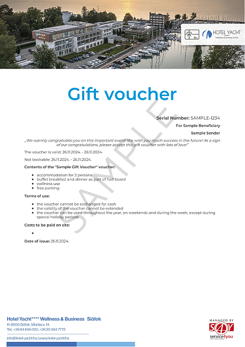- Unlimited use of Wellness Center and Sauna World: 25-meter swimming pool, children's paddling pool, sparkling pool, Finnish sauna, infrared sauna, steam cabin, salt room, relaxation island